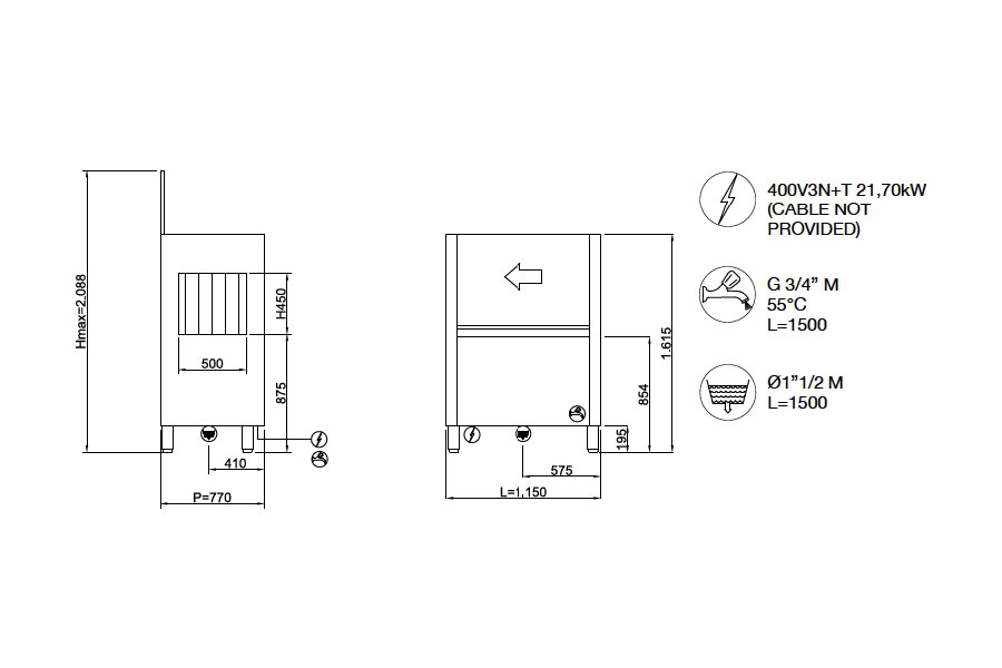 Kompaktný model vhodný do menších priestorov. Užitočný otvor 450 mm umožňuje vloženie širokej škály riadu, plechov na cesto, hrncov na pečenie a rôzneho náčinia.